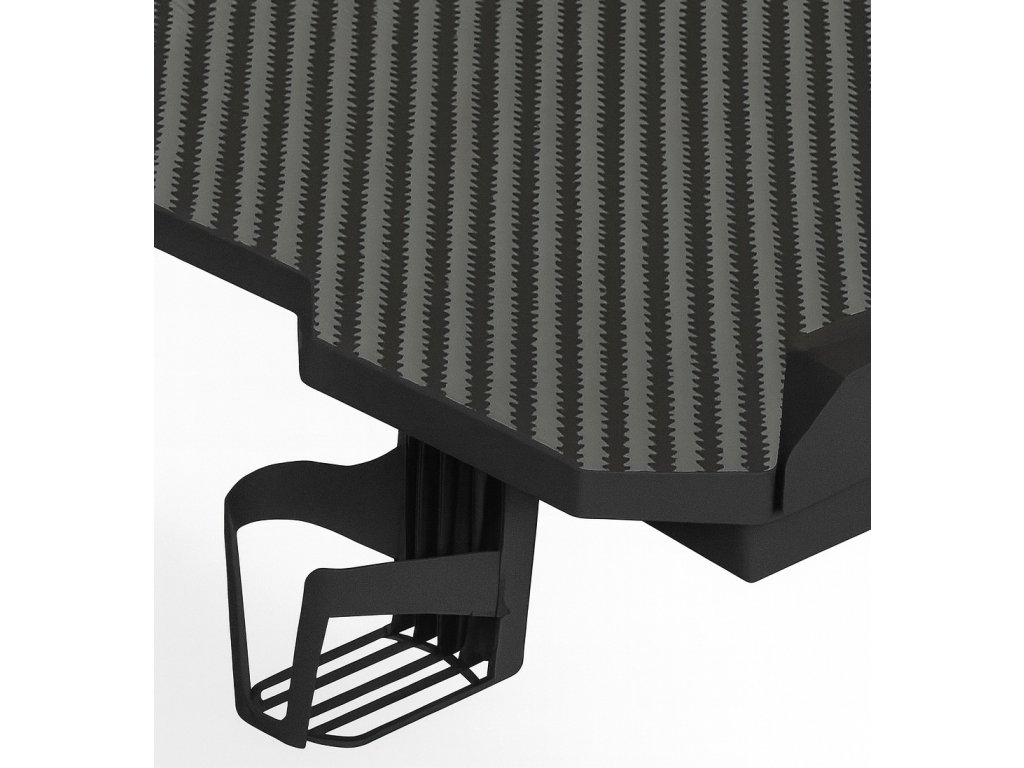 ✔️ Doplnky vždy poruke – držiak na slúchadlá a pohár udržiavajú poriadok a uvoľňujú miesto na doske.