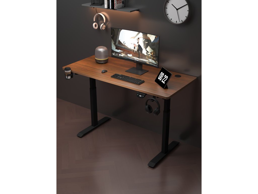 Elektricky nastaviteľný stôl 120 cm – výška 72–118 cm, tmavohnedý s čiernym rámom, LED podsvietenie