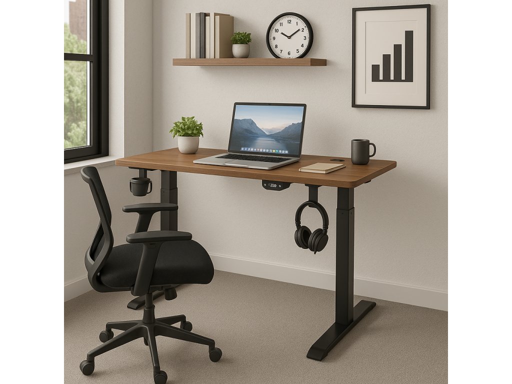 Elektricky nastaviteľný stôl je ideálnym riešením pre tých, ktorí si cenia zdravé držanie tela a pohodlie pri práci. Vďaka plynulej regulácii výšky si môžete pracovnú dosku prispôsobiť na prácu v sede aj v stoji – všetko jedným tlačidlom.