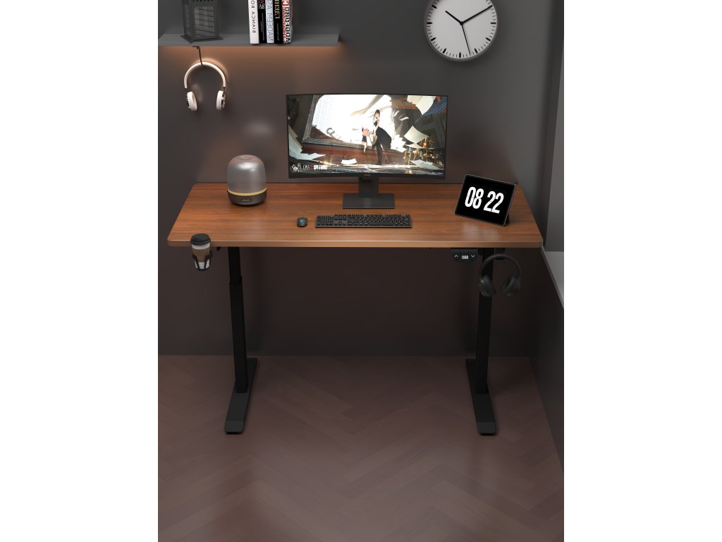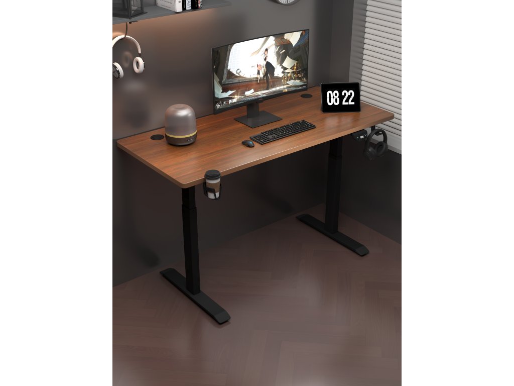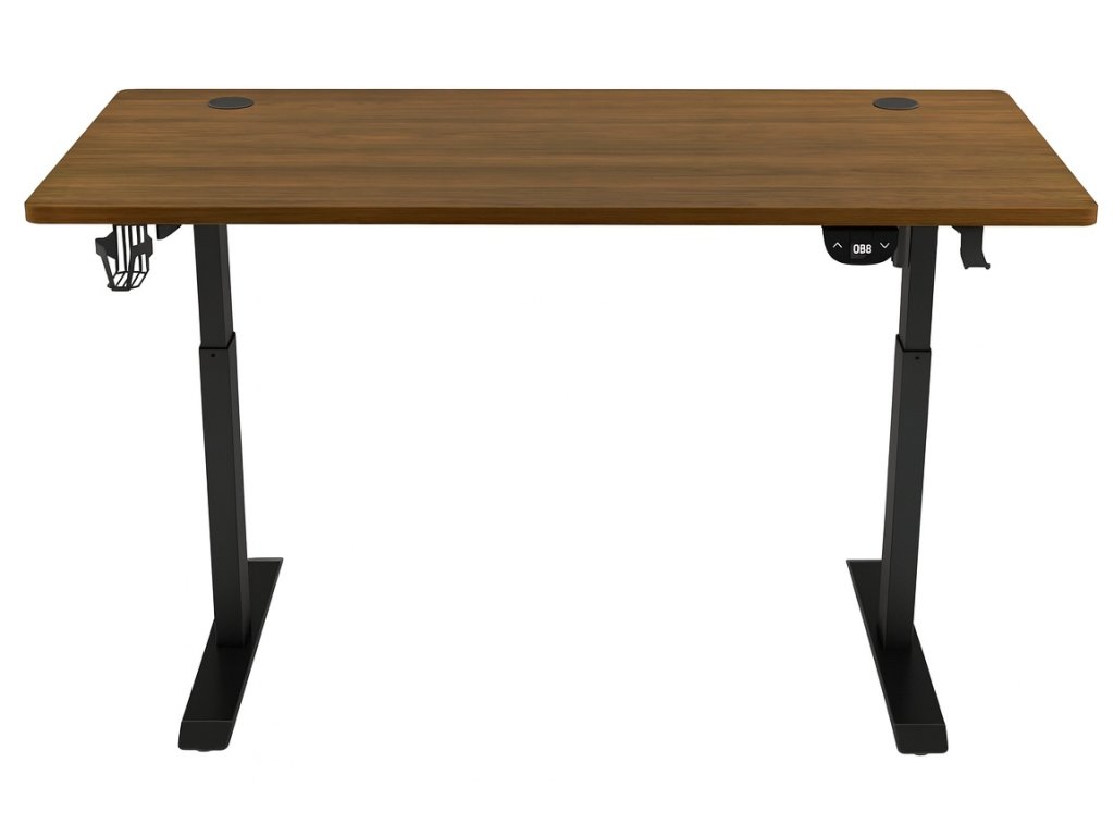Elektricky nastaviteľný stôl 140 cm – výška 72–118 cm, tmavohnedý s čiernym rámom, LED podsvietenie