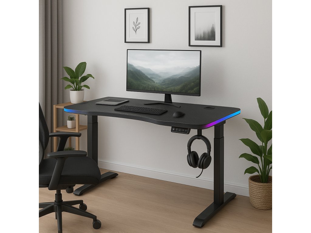 Elektricky nastaviteľný stôl 140 cm – výška 72–118 cm, čierny, LED podsvietenie