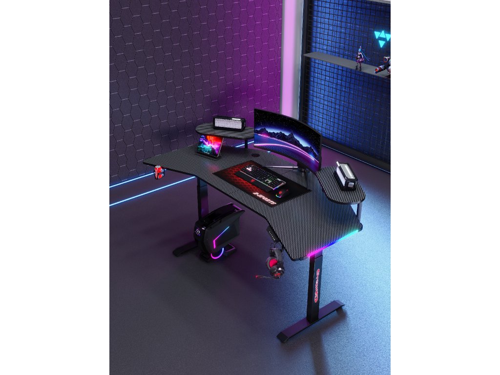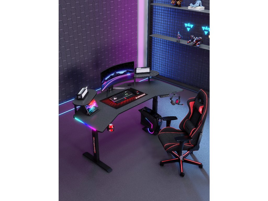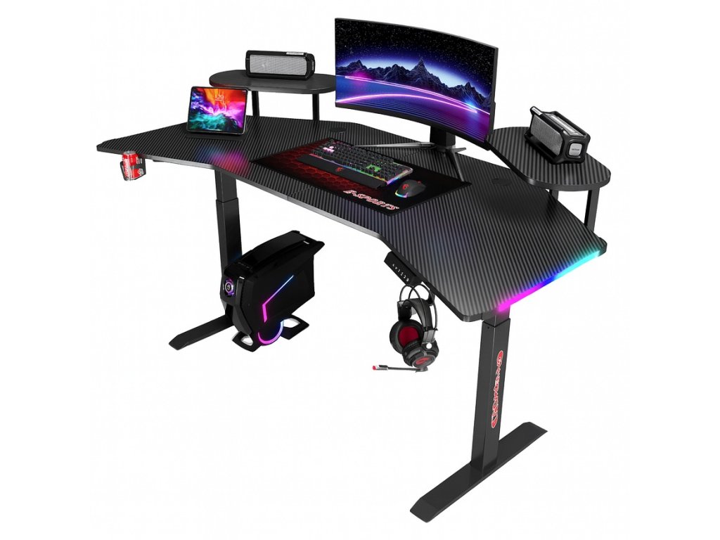 Elektrický rohový stôl BR03-160 cm – výška 72–117 cm, čierny, LED podsvietenie
