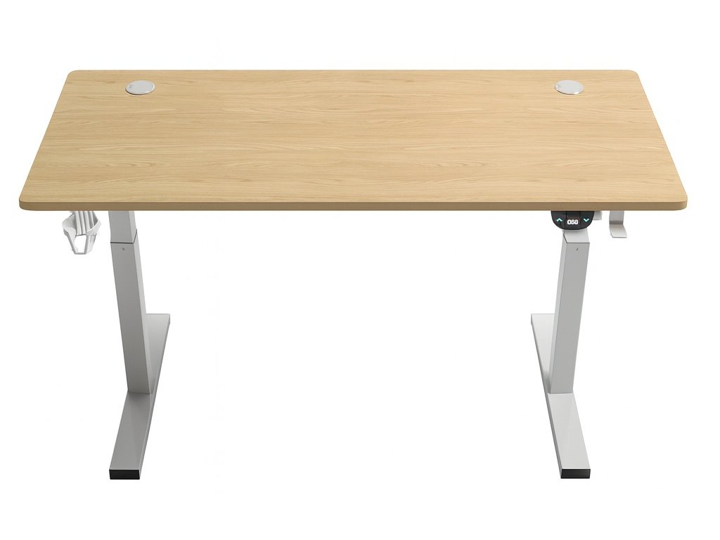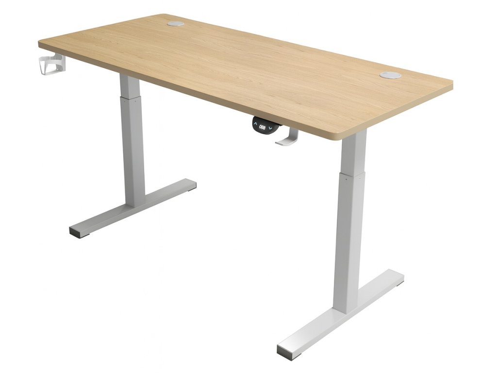 Elektricky nastaviteľný stôl 120 cm – výška 72–118 cm, svetlohnedý štýl s bielym rámom, LED