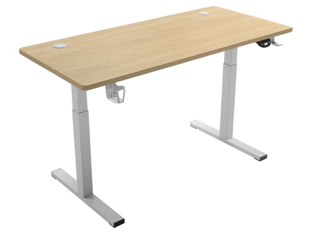 Elektricky nastaviteľný stôl 140 cm – výška 72–118 cm, svetlohnedý štýl s bielym rámom, LED