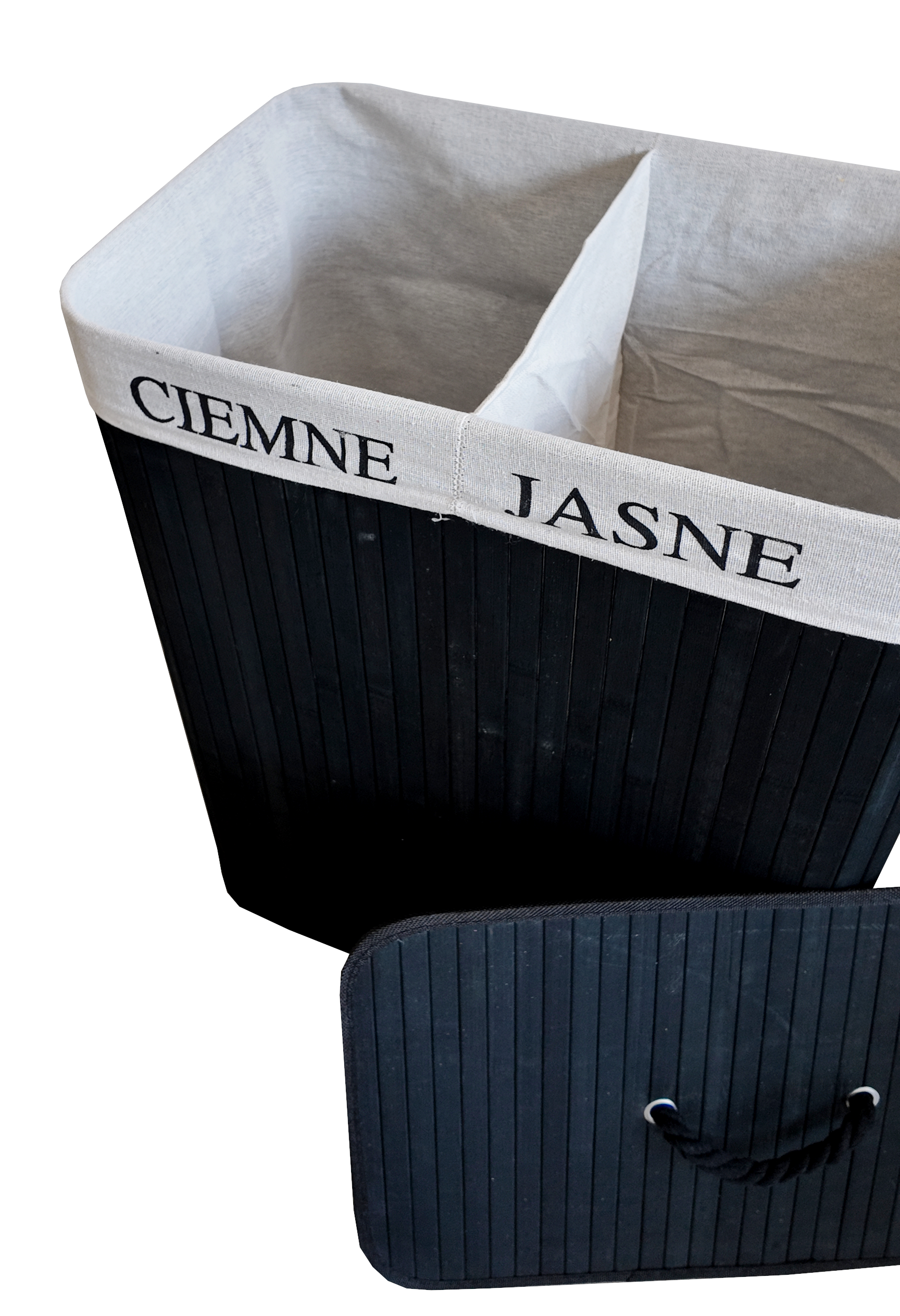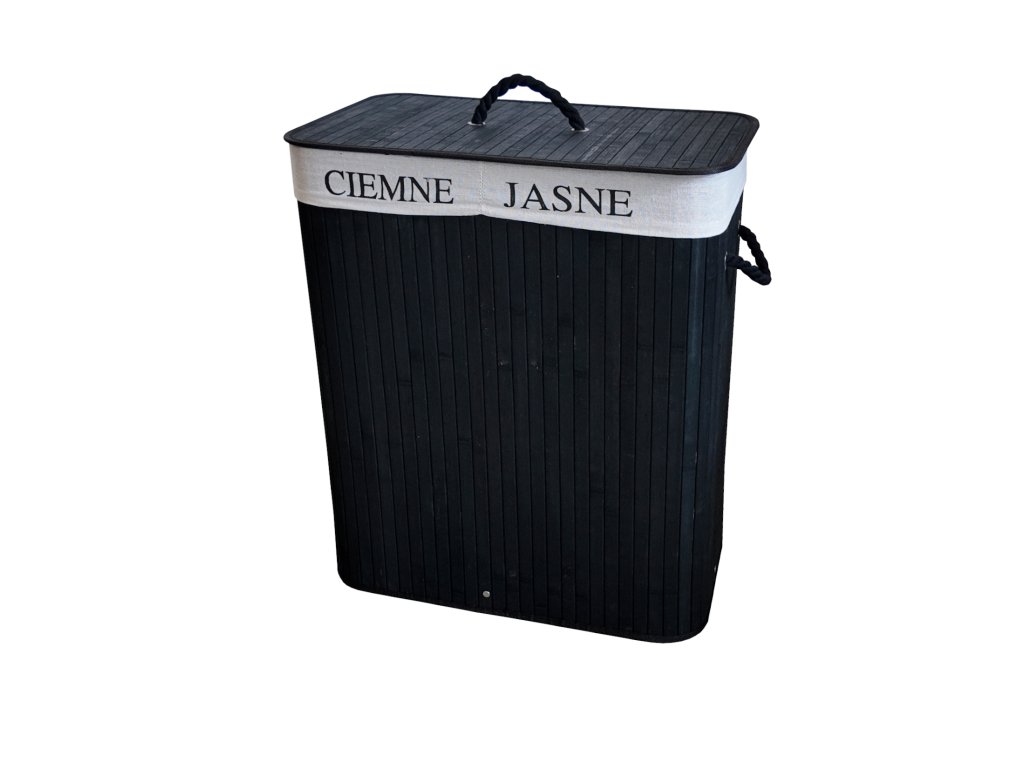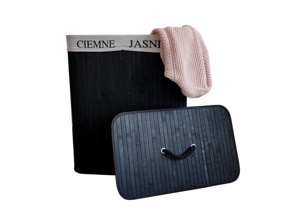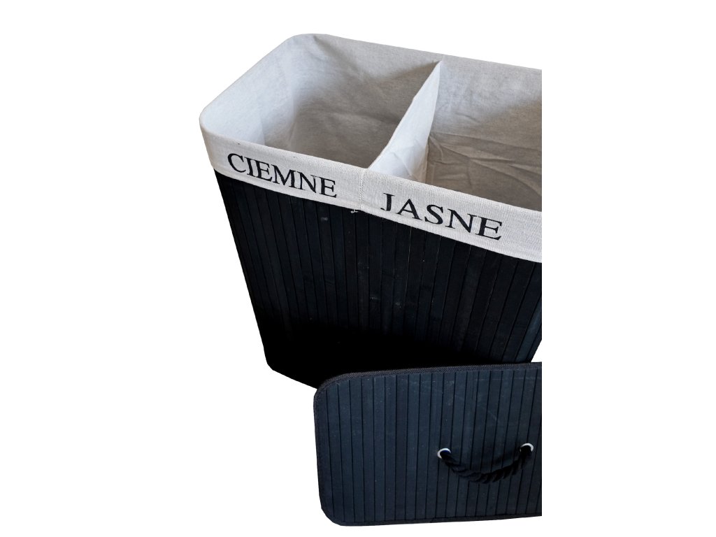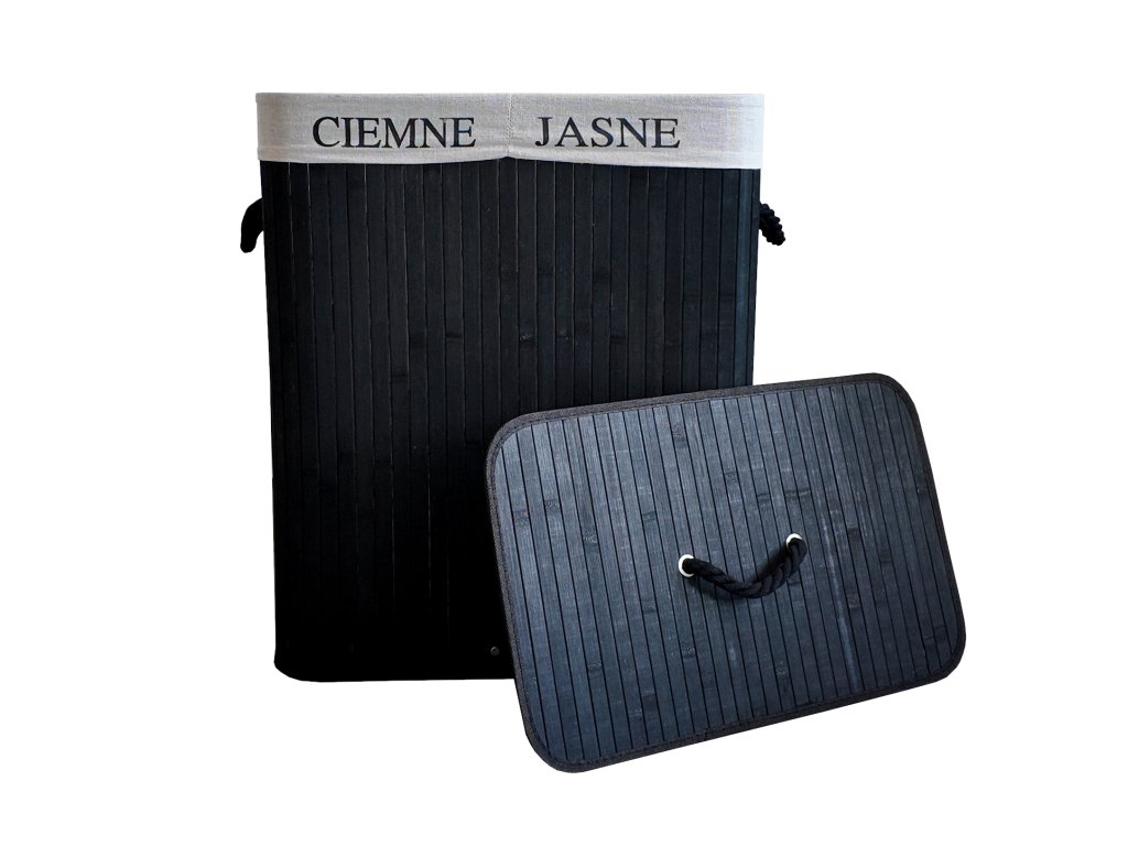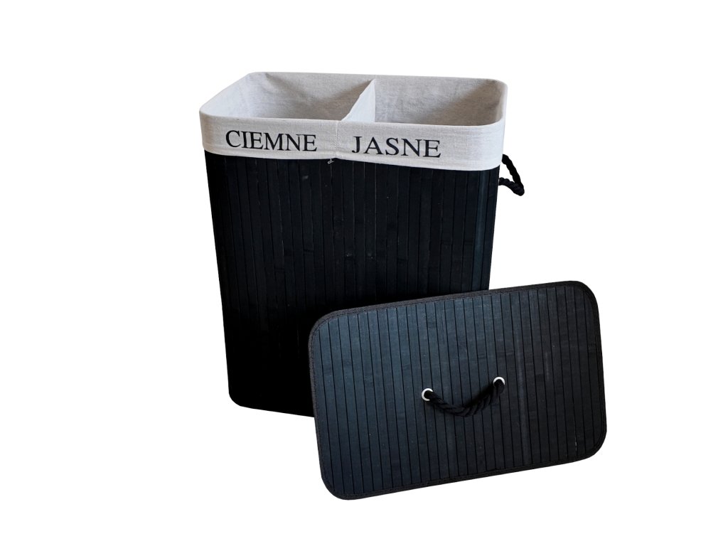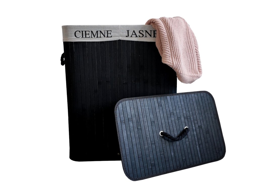 🧺 Bambusový kôš na prádlo 100 L s 2 komorami čierny– praktické triedenie a úspora miesta