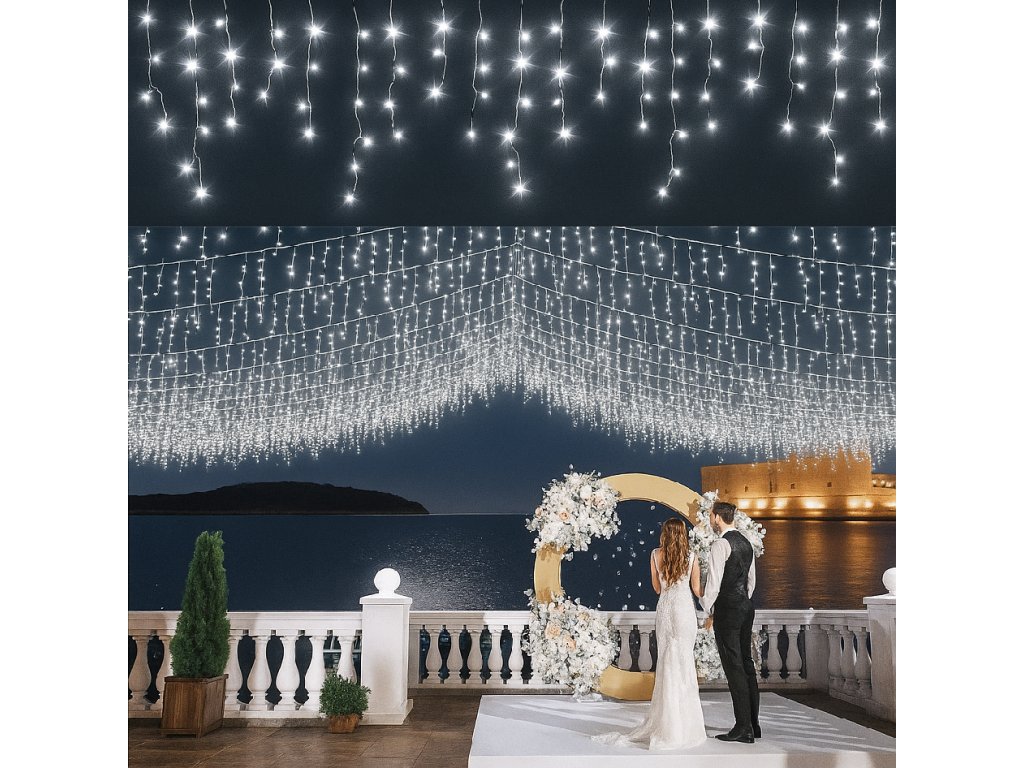 ➡️Naša svetelná záclona – cencúle 300 LED v studenej bielej farbe je klasika v modernom prevedení.