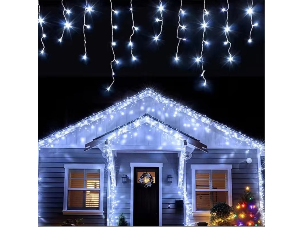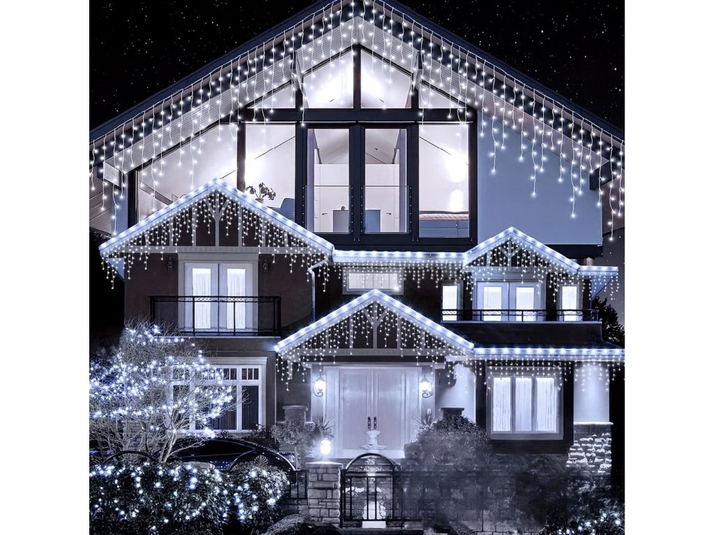 ✔️Dekorácia strechy a fasády domu – zaveste cencúle pozdĺž odkvapu a vytvorte efekt stekajúceho ľadu.