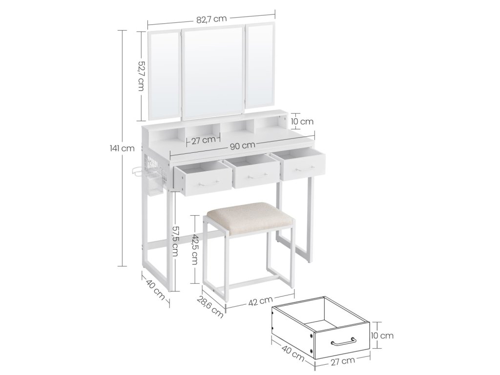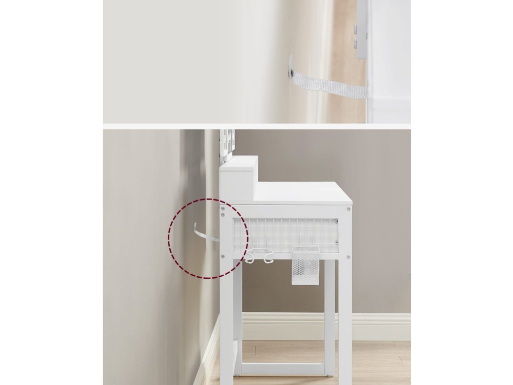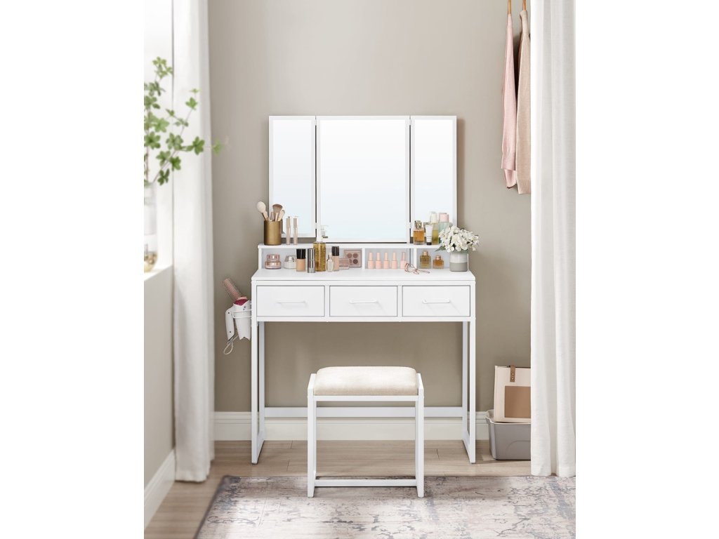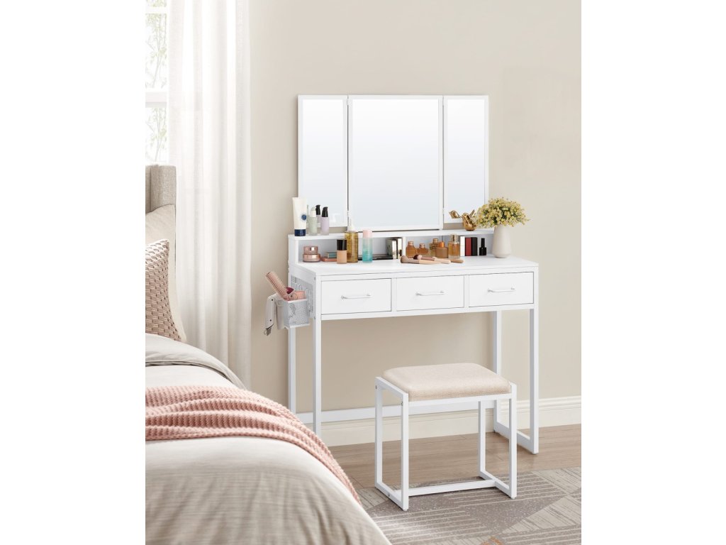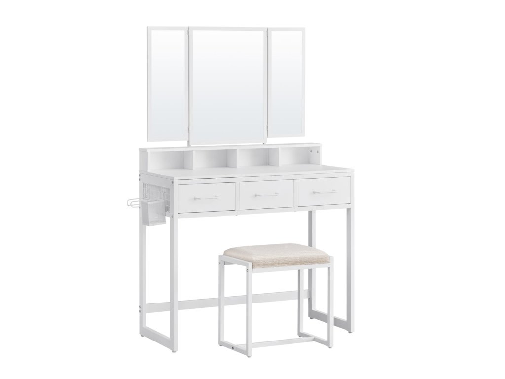 Hľadáš praktický a elegantný toaletný stolík, ktorý sa stane tvojím osobným priestorom na každodenné rituály krásy? Táto biela toaletný stolík s oceľovou konštrukciou je navrhnutý tak, aby ti poskytol maximálne pohodlie, štýl a organizáciu – presne to, čo si zaslúžiš. 💄✨