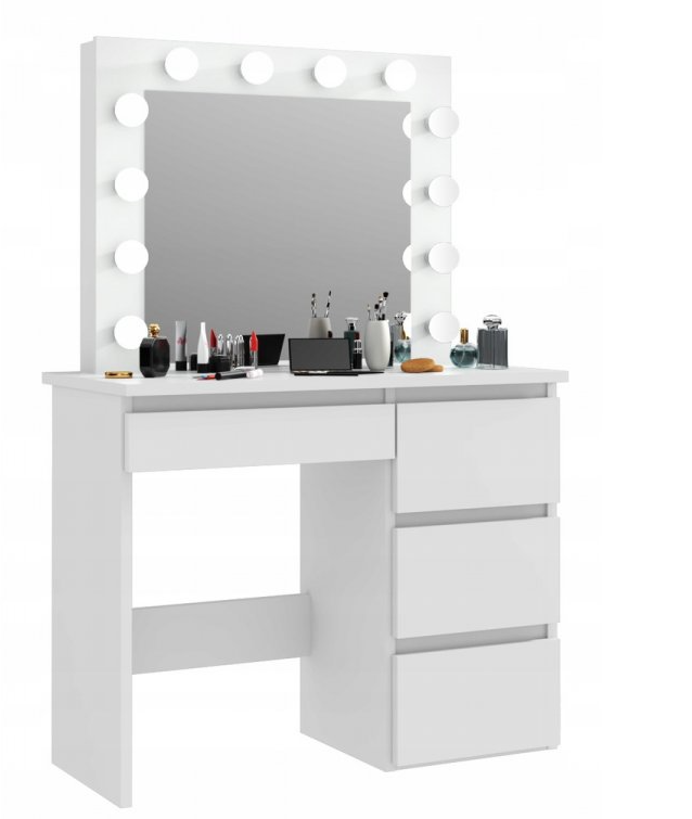 Jednoduchý toaletný stolík s osvetlením ako v americkom filme, Vám umožní starať sa o svoju krásu ako skutočná hviezda. Poslúži pri starostlivosti o pleť, líčení a tvorbe účesov. 12 LED žiaroviek dodáva šarm a eleganciu.