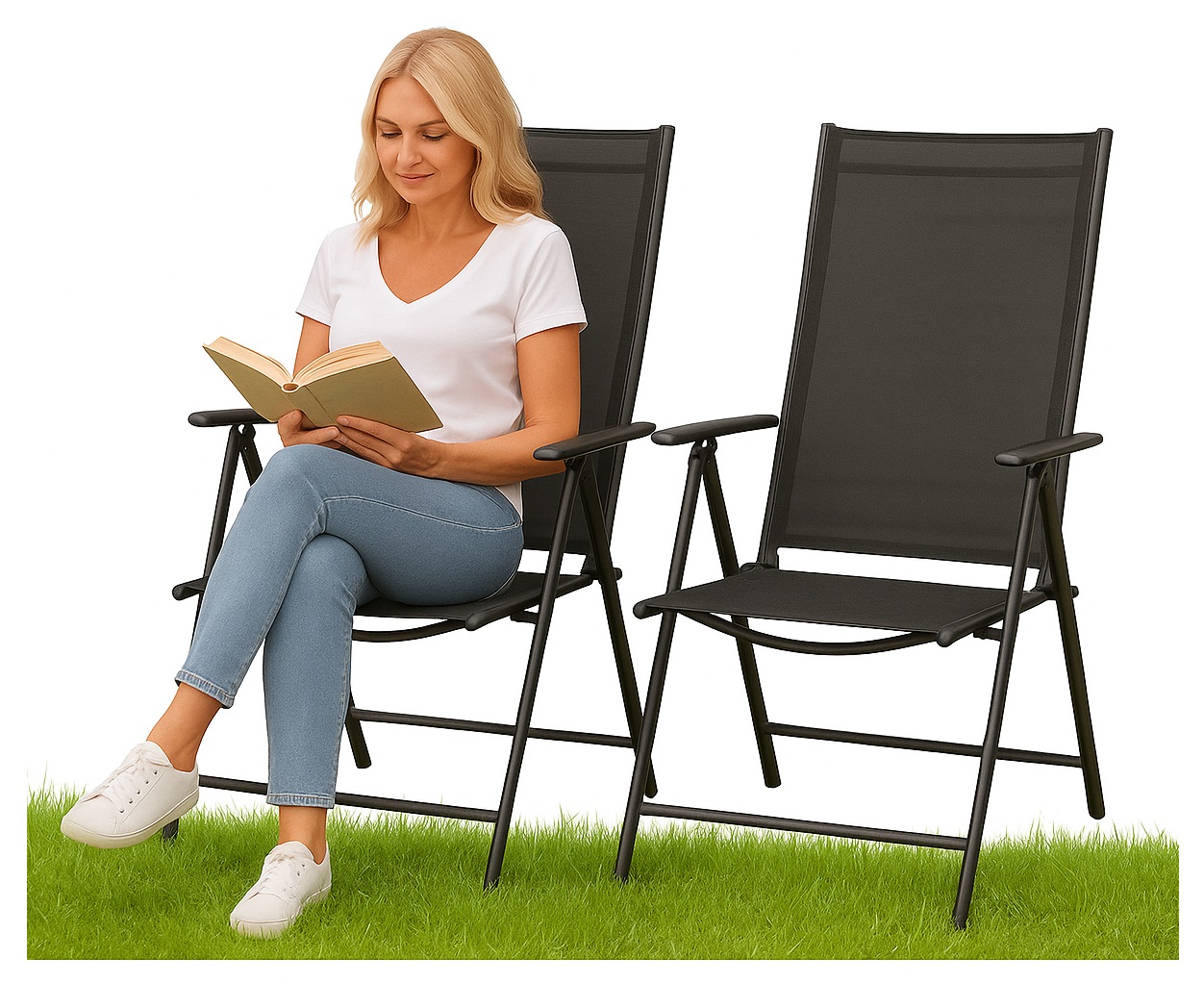 Záhradné stoličky s polohovateľným operadlom sada 2ks čierne