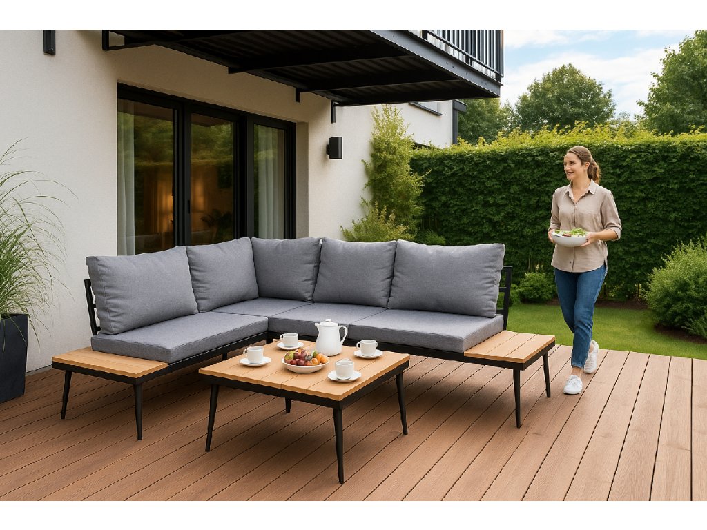 Vytvorte si dokonalý relaxačný priestor priamo na terase či v záhrade! Táto moderná 4‑dielna súprava ponúka kombináciu pohodlia, elegantného dizajnu a praktickej modulárnosti, vďaka ktorej sa jednoducho prispôsobí vašim potrebám aj veľkosti priestoru.