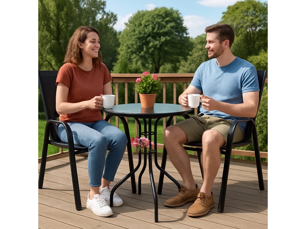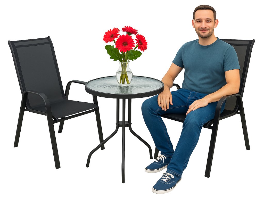 Táto moderná súprava je ideálnym riešením na balkón, terasu či menšiu záhradnú zónu. Kombinuje elegantný dizajn, pevné materiály a výnimočné pohodlie, vďaka čomu vytvára dokonalý priestor na rannú kávu, rodinný obed aj večerný oddych. ☕🌞🌙