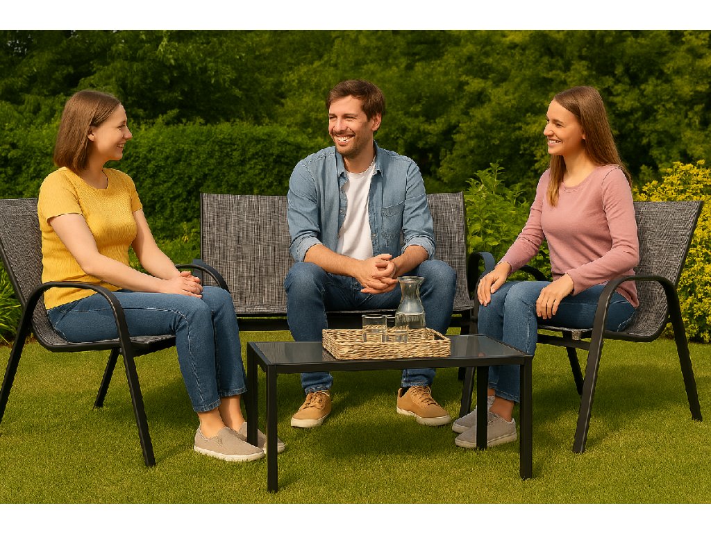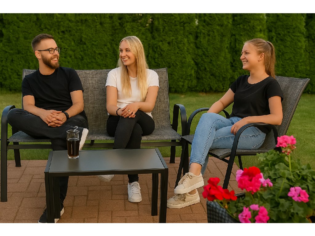 Táto elegantná záhradná súprava je ideálnym riešením pre rodinné posedenia, spoločenské stretnutia aj každodenný oddych. Minimalistický dizajn, odolné materiály a ergonomické tvary z nej robia súpravu, ktorá zvýši estetiku aj pohodlie vášho exteriéru – či už ju umiestnite na terasu, balkón alebo do záhrady. 🌞🛋️